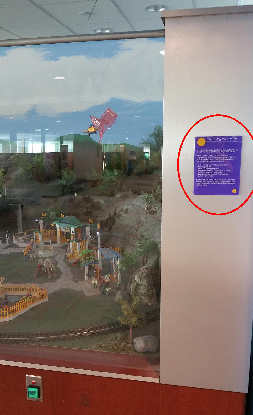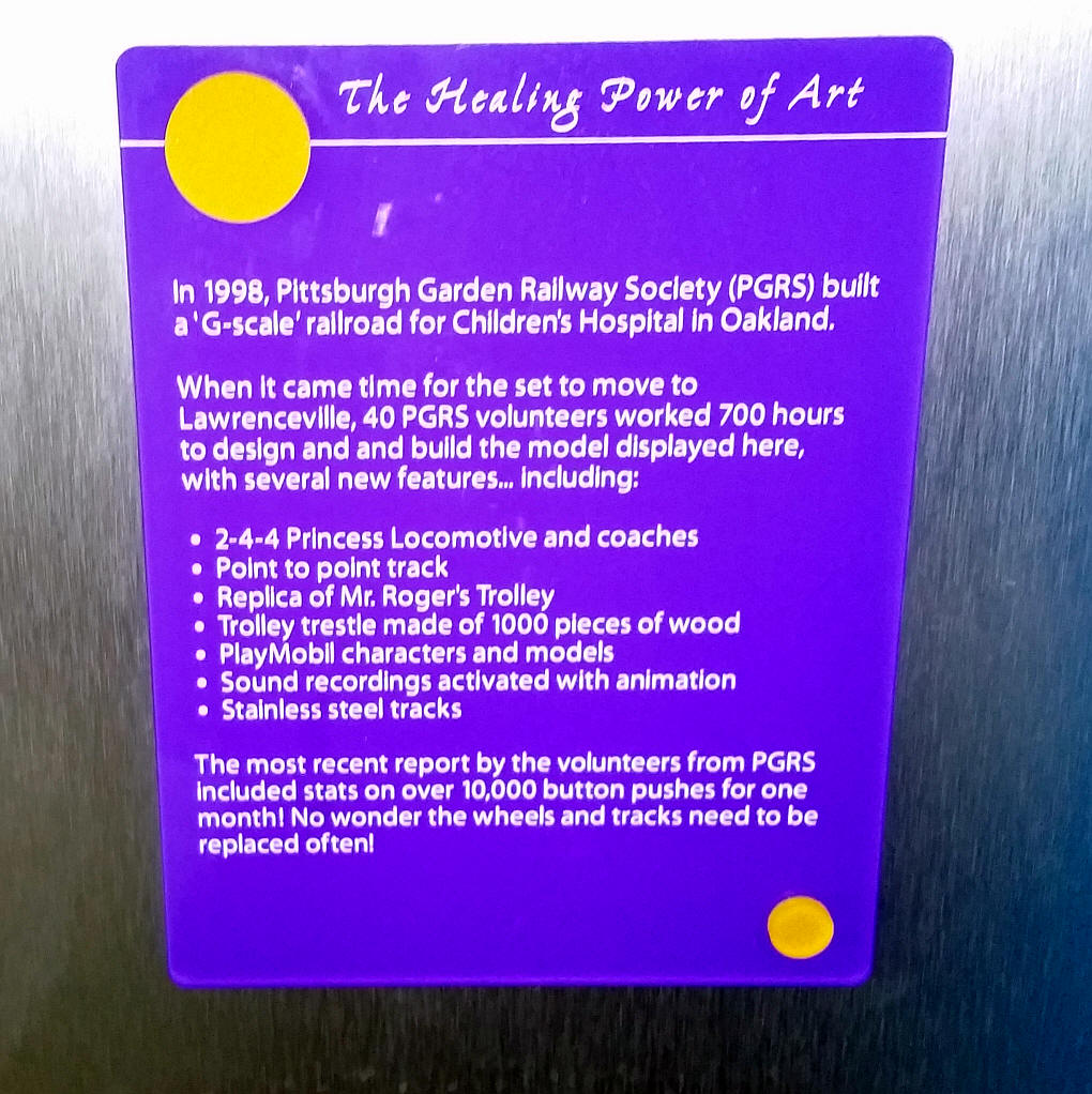 At the January meeting there was a question about Children's Hospital giving credit to the PGRS for our work on the layout there. The plaque in this photo is attached to the layout.